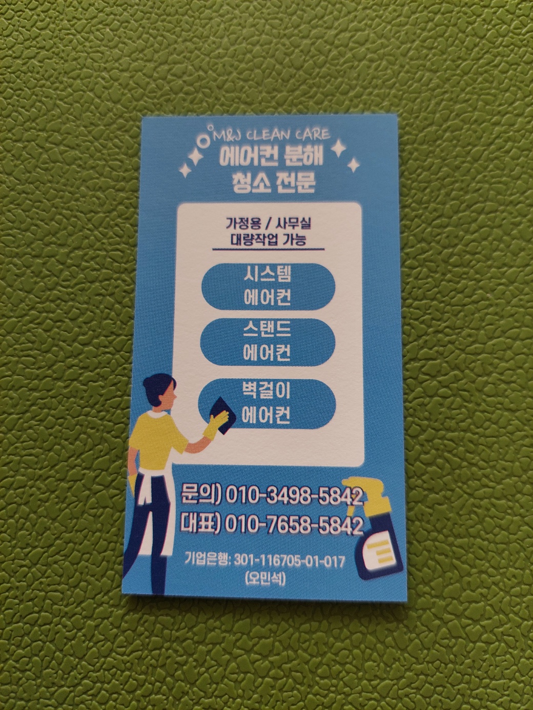 이번에 제가 직접 문의한 업체는 M&J clean이라는 곳이에요.